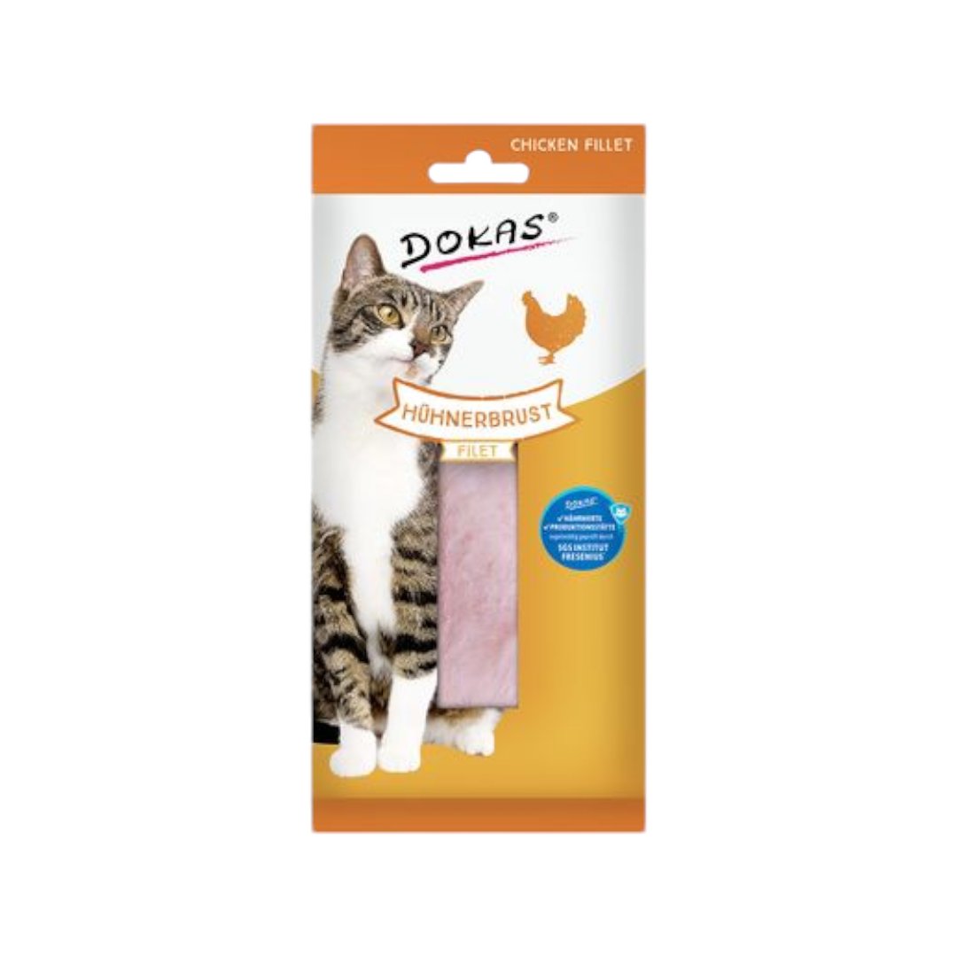 Dokas пилешко филе за котки – Висококачествено натурално пилешко филе, идеално за награда или допълнение към храненето. Без изкуствени добавки и подходящо за всички котки.