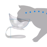 - Комфорт и здраве: Дизайнът под ъгъл осигурява правилна поза на котката по време на хранене, като това помага за предотвратяване на храносмилателни проблеми и болки във врата.