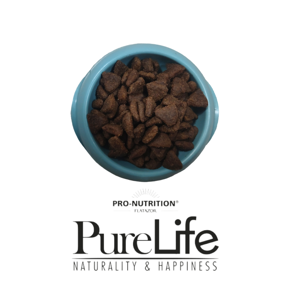Pro-Nutrition Pure Life Dog Adult Light and/or Sterilized е формула, създадена за подпомагане на контрола на теглото на вашето куче, особено ако то е кастрирано или склонно към наднормено тегло. Съдържа 27% дехидратирани животински протеини (включително пиле), обогатена с фибри, които спомагат за усещането на ситост, както и L-карнитин, който подпомага метаболизма на мазнините.